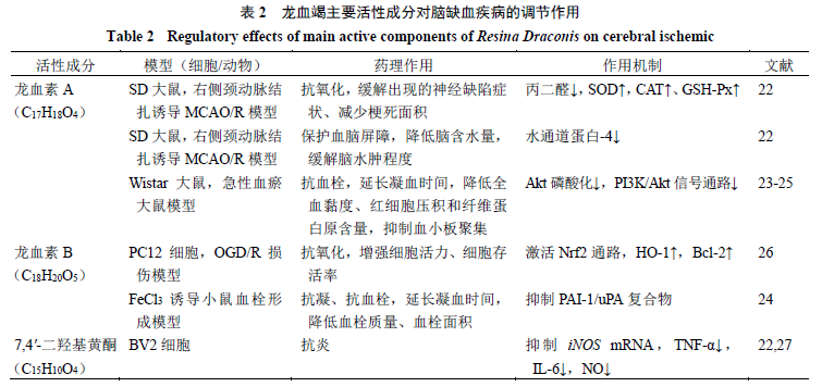 龙血竭及其主要活性成分对脑缺血的药理作用与机制